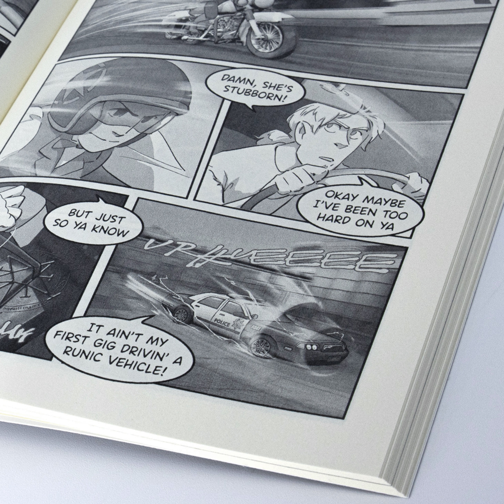 Black and white, contains an exclusive spin-off story and bonus lore content!