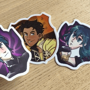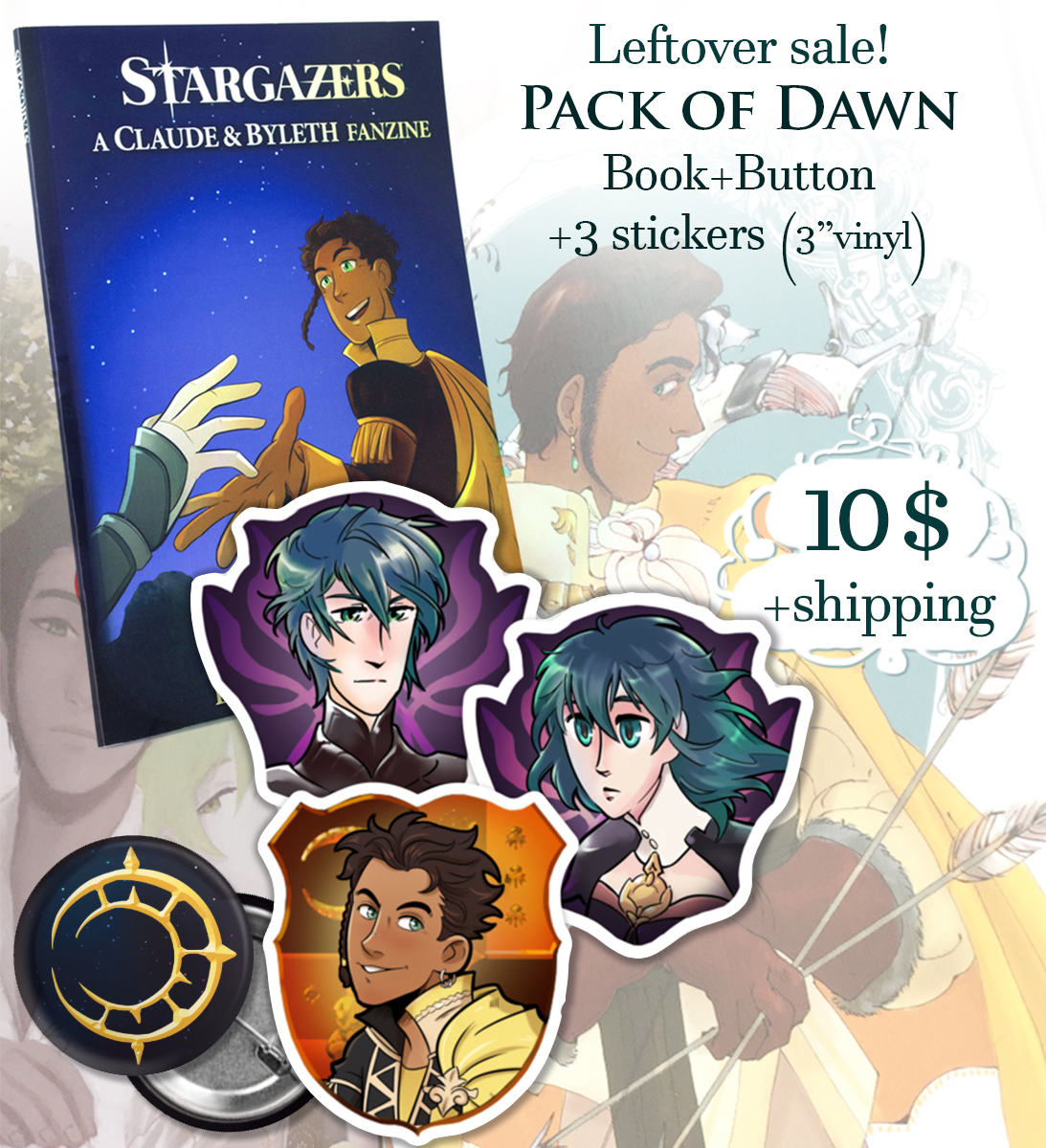 The "Stargazers" Fire Emblem fanzine, 3 vinyl stickers and a Riegan badge all together!